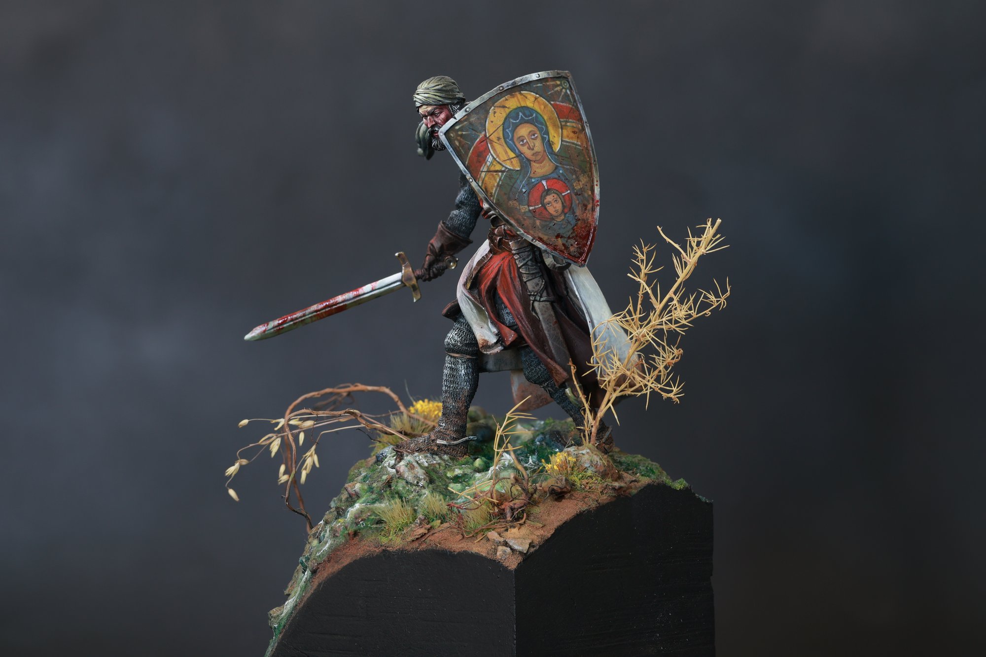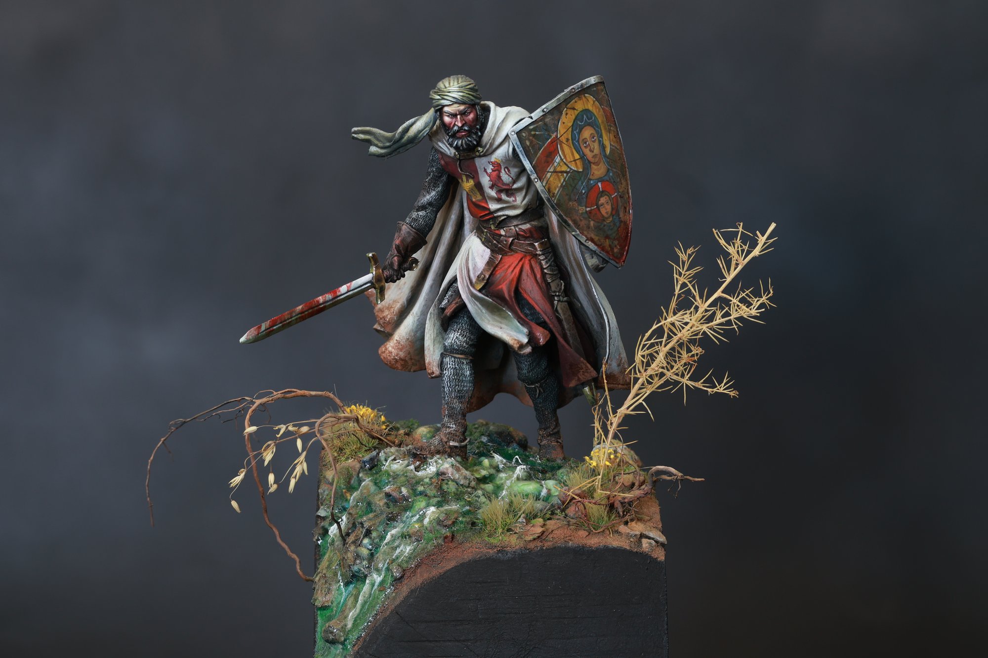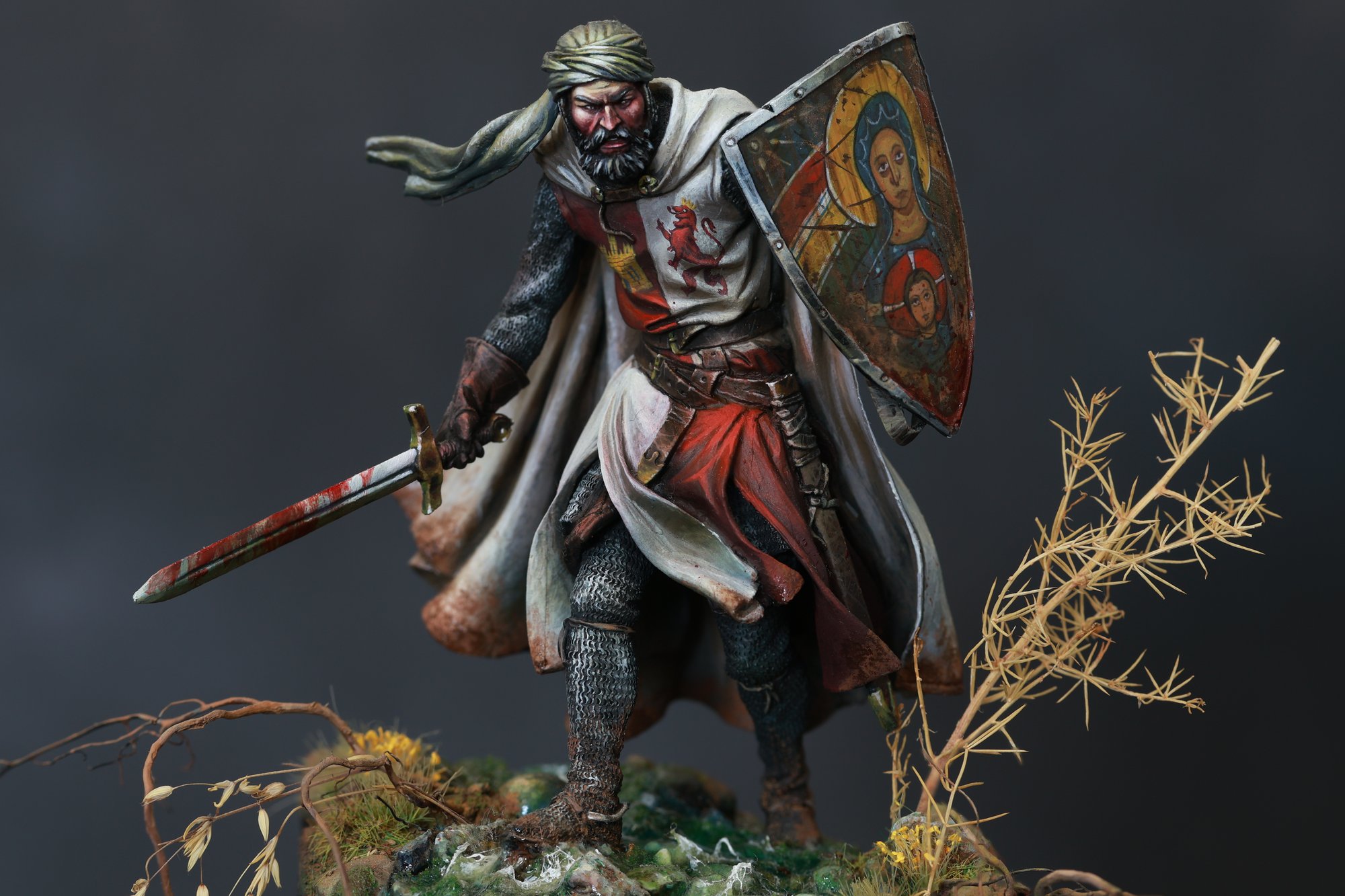 Beautiful 32mm medieval miniature masterfully painted by Jorge Bea during 2023.