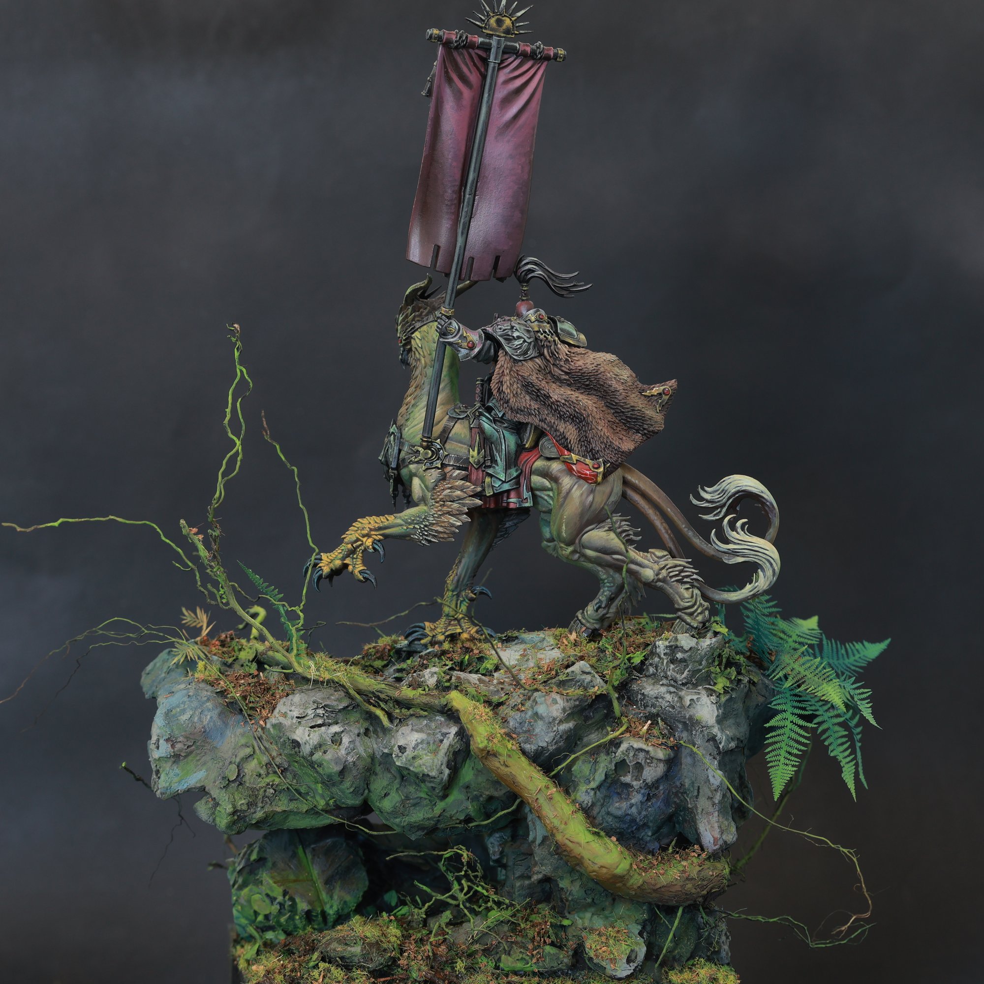 Awarded diorama-miniature by Jorge Bea made during 2021. Conversion. It was originally painted to participate in Golden Demon 2022 but due to the lizardman in the base not being Games Workshop brand it wouldnt qualify to participate. This took many months to paint and be finished, its exquisite miniature art.